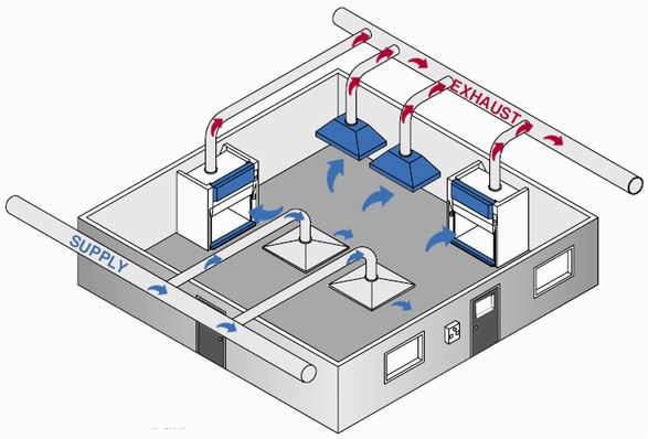 实验室排风系统 实验室内往往存在许多不利于人体健康的化学物质污染源,特别是有害气体,将其排除非常重要。但与此同时,能源往往会被大量的消耗,因而实验室的通风控制系统的要求渐高,从早期CV(定风量),2... 详细内容