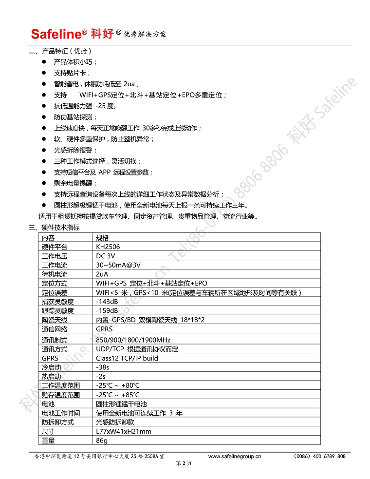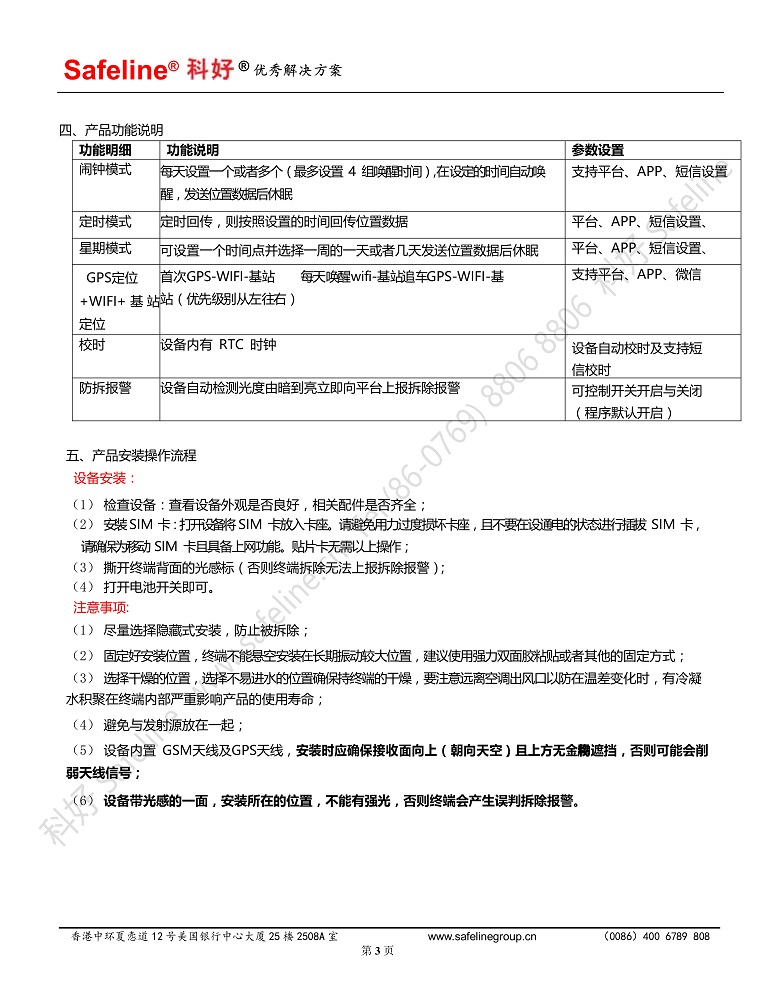 科好Safeline007无线定位器安装操作使用技术说明书