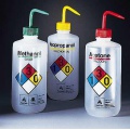 500ml塑料安全洗瓶有六种规格型号:1.蒸馏水专用 500ml 上开口 本色盖 2.丙酮专用 500ml 上开口 红色盖 3.乙醇专用 500ml 上开口 绿色盖 4.甲醇专用 500ml 上开口 白色盖 5.异丙醇专用 500ml 上开口 黄色盖 6.次氯酸钠消毒剂专用 500ml 上开口 白色盖